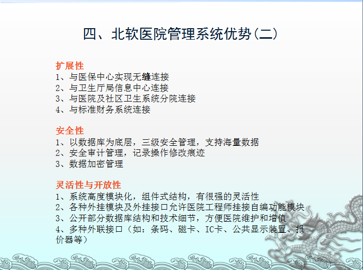 《北(běi)軟醫(yī)院信息管理(lǐ≠™)系統》9.0版(XRHIS v9.0)包括門(mén)診信息γ♥管理(lǐ)系統、住院信息管理(lǐ)系統、藥庫藥房(fáβ§ng)信息管理(lǐ)系統、門(mén)診藥房(↕♠>fáng)管理(lǐ)系統、住院藥房(fáng)管理(lǐ)系統、病案管理÷€(lǐ)系統、院長(cháng)查詢管理(lǐ)系統、财務信息管理₽δ(lǐ)系統、社保(農(nóng)合,醫Ω&₹£(yī)保,保險,财務)接口系統